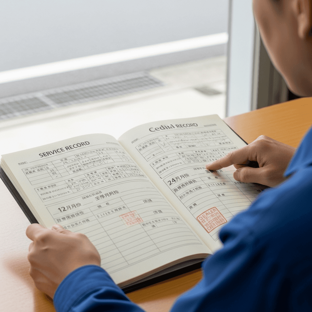 セドリックセダンの整備記録簿に定期点検(12ヶ月・24ヶ月)の履歴が全て記載されていれば「管理の行き届いた車」と高評価。特にエンジンオイル交換履歴は重要で+6~9万円の効果。