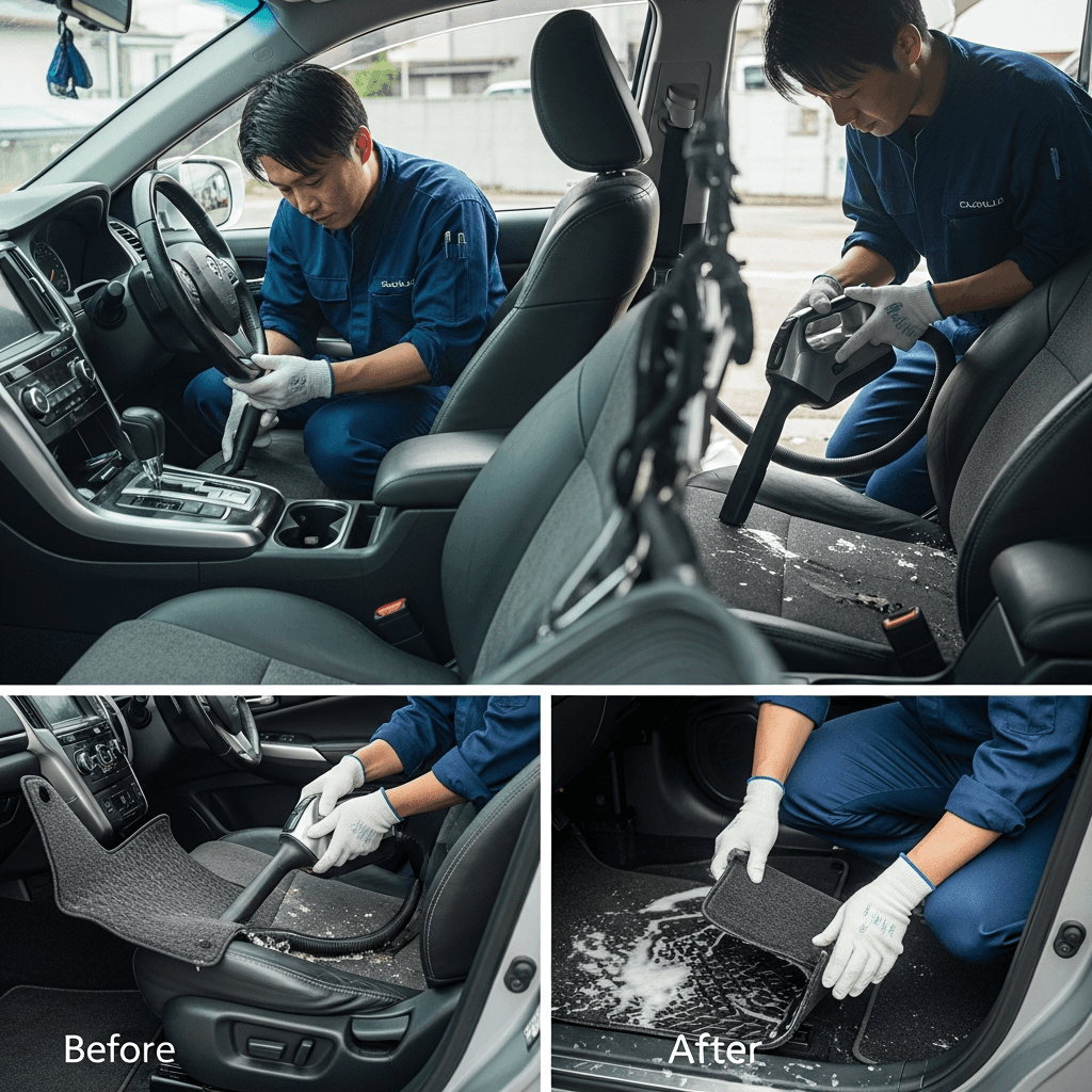 セドリックセダンは第一印象が査定の8割を決めます。シート隙間のゴミ除去、マット洗浄、樹脂パーツ艶出しで新車級の清潔感に。特に臭いゼロなら「禁煙車」扱いで+5~8万円UP。