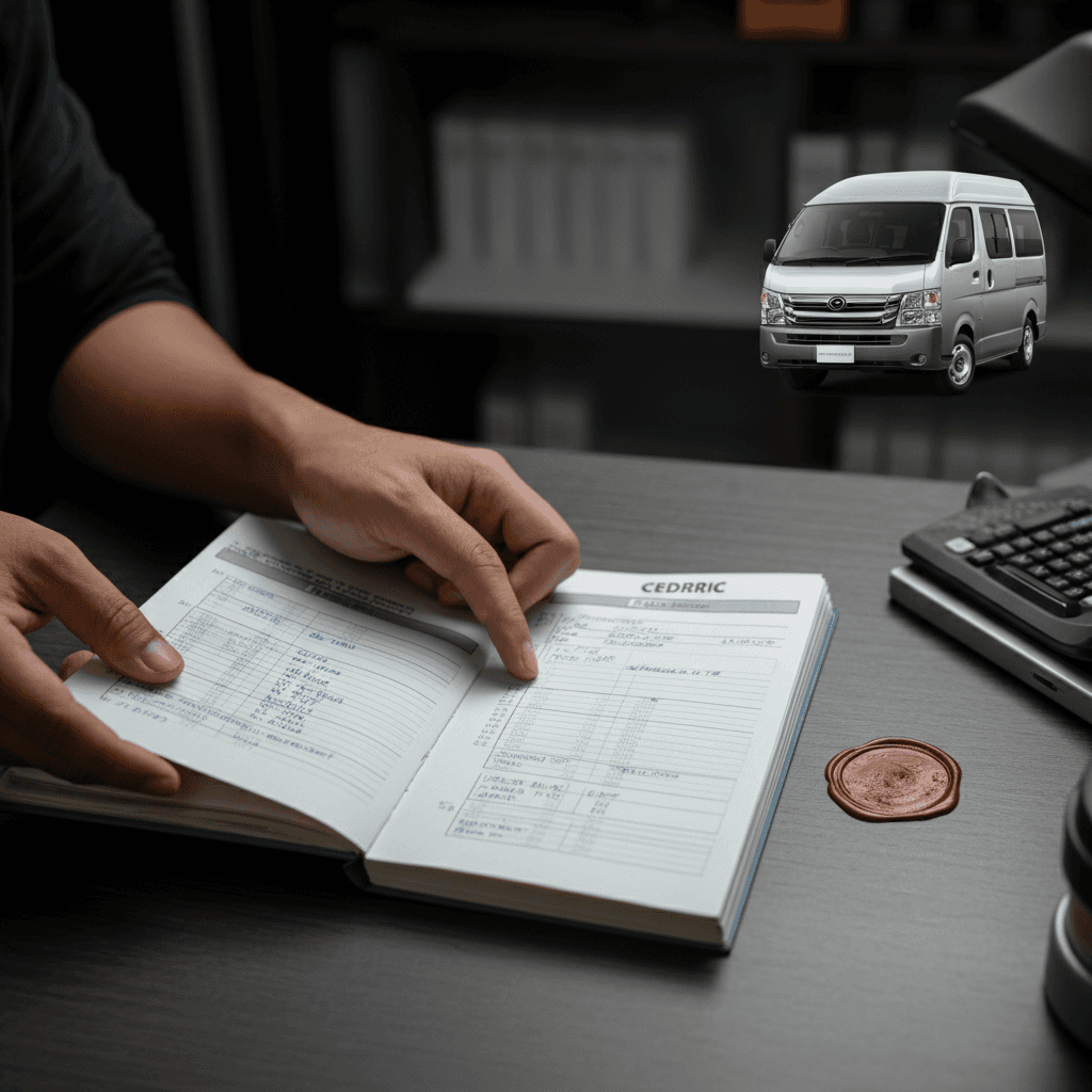 セドリックバンの整備記録簿に定期点検(12ヶ月・24ヶ月)の履歴が全て記載されていれば「管理の行き届いた車」と高評価。特にエンジンオイル交換履歴は重要で+6~9万円の効果。
