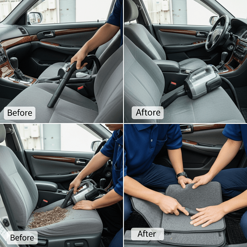 セフィーロワゴンは第一印象が査定の8割を決めます。シート隙間のゴミ除去、マット洗浄、樹脂パーツ艶出しで新車級の清潔感に。特に臭いゼロなら「禁煙車」扱いで+5~8万円UP。