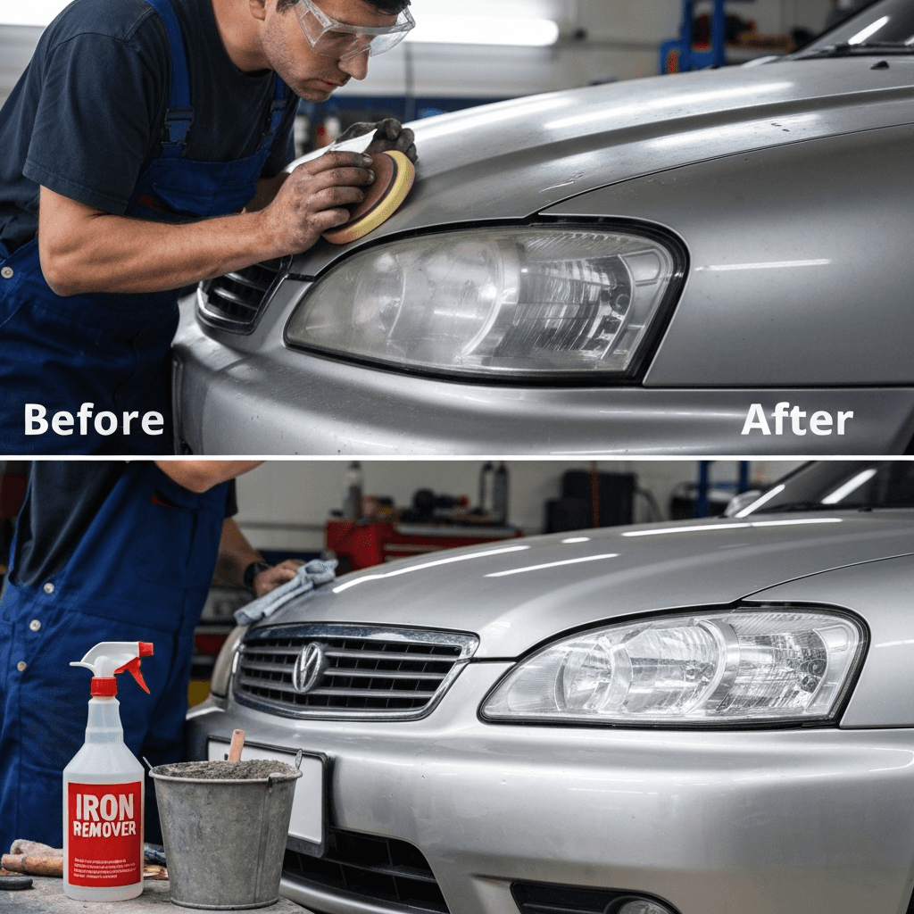 ヘッドライト黄ばみ除去+ボディ鉄粉除去で輝き復活!