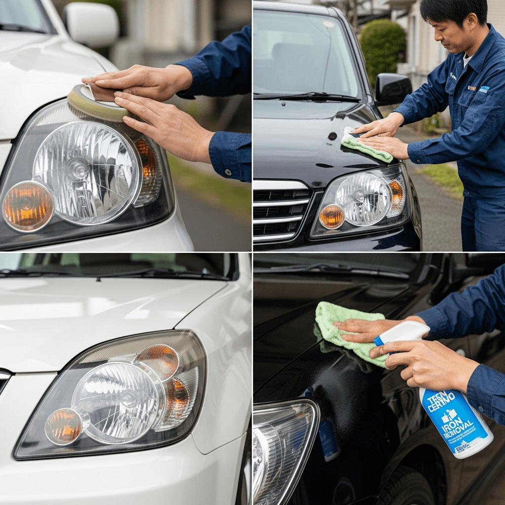 ヘッドライト黄ばみ除去+ボディ鉄粉除去で輝き復活!