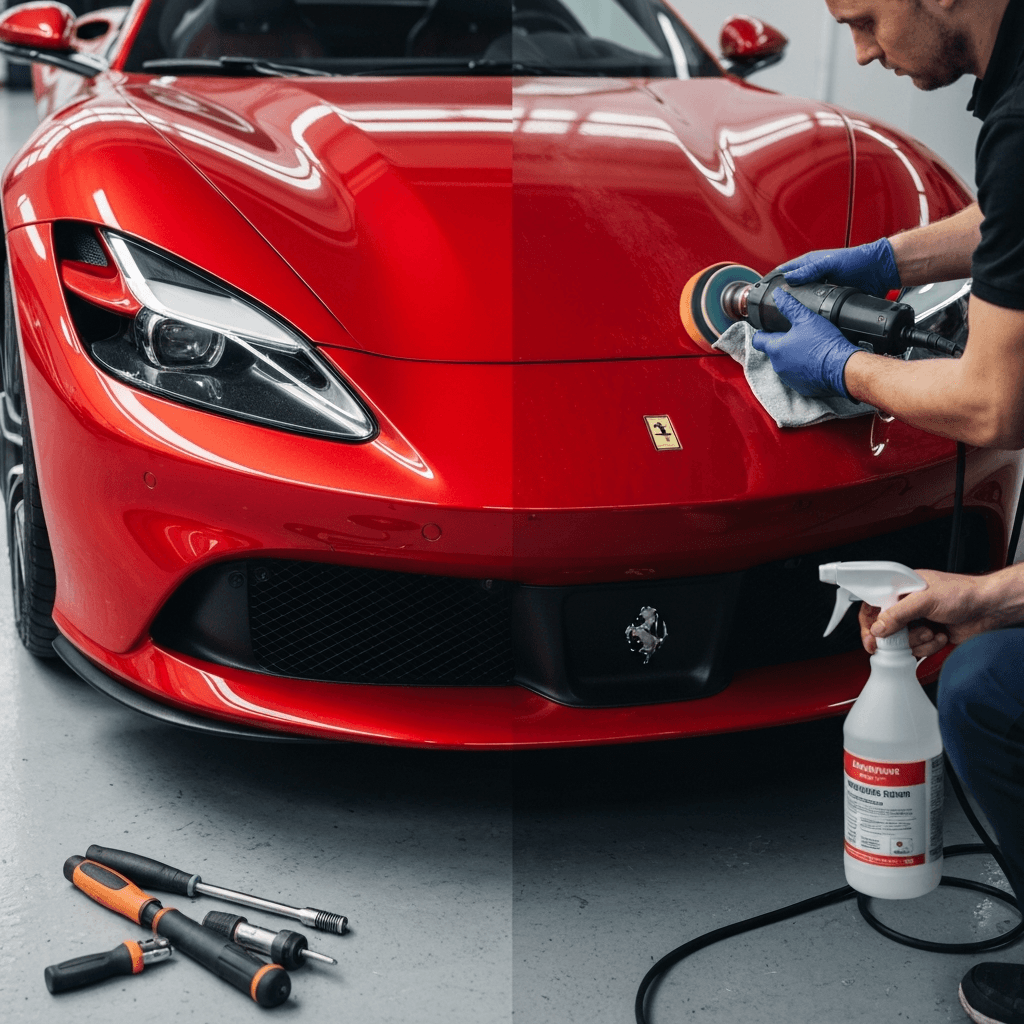 セルボはヘッドライトの黄ばみとボディの鉄粉が第一印象を損ねます。研磨+鉄粉除去クリーナー+ワックスで輝きを取り戻せば「程度良好」と判断され+4~7万円の効果。