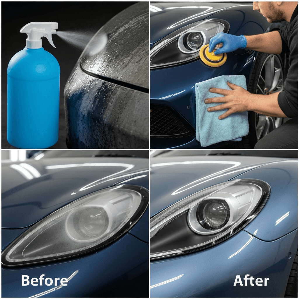 ヘッドライト黄ばみ除去+ボディ鉄粉除去で輝き復活!