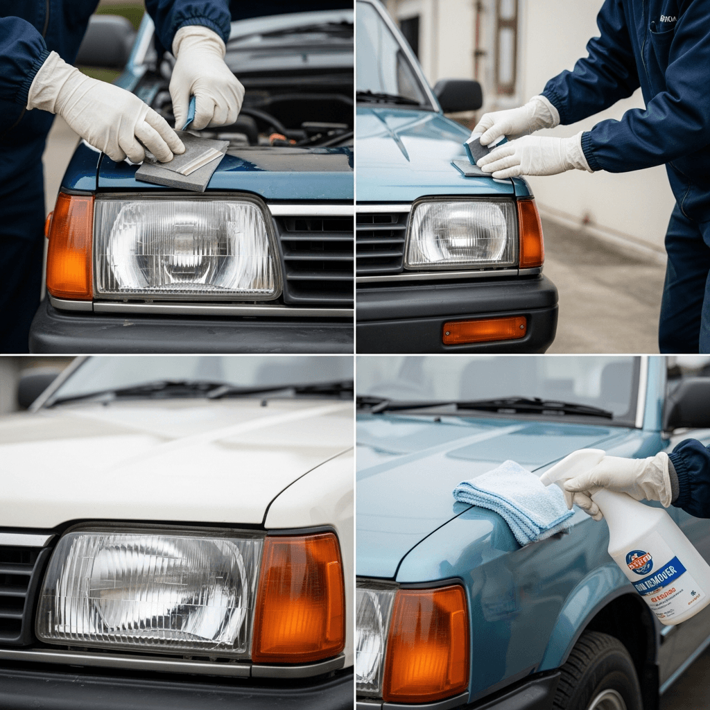 シャレードはヘッドライトの黄ばみとボディの鉄粉が第一印象を損ねます。研磨+鉄粉除去クリーナー+ワックスで輝きを取り戻せば「程度良好」と判断され+4~7万円の効果。