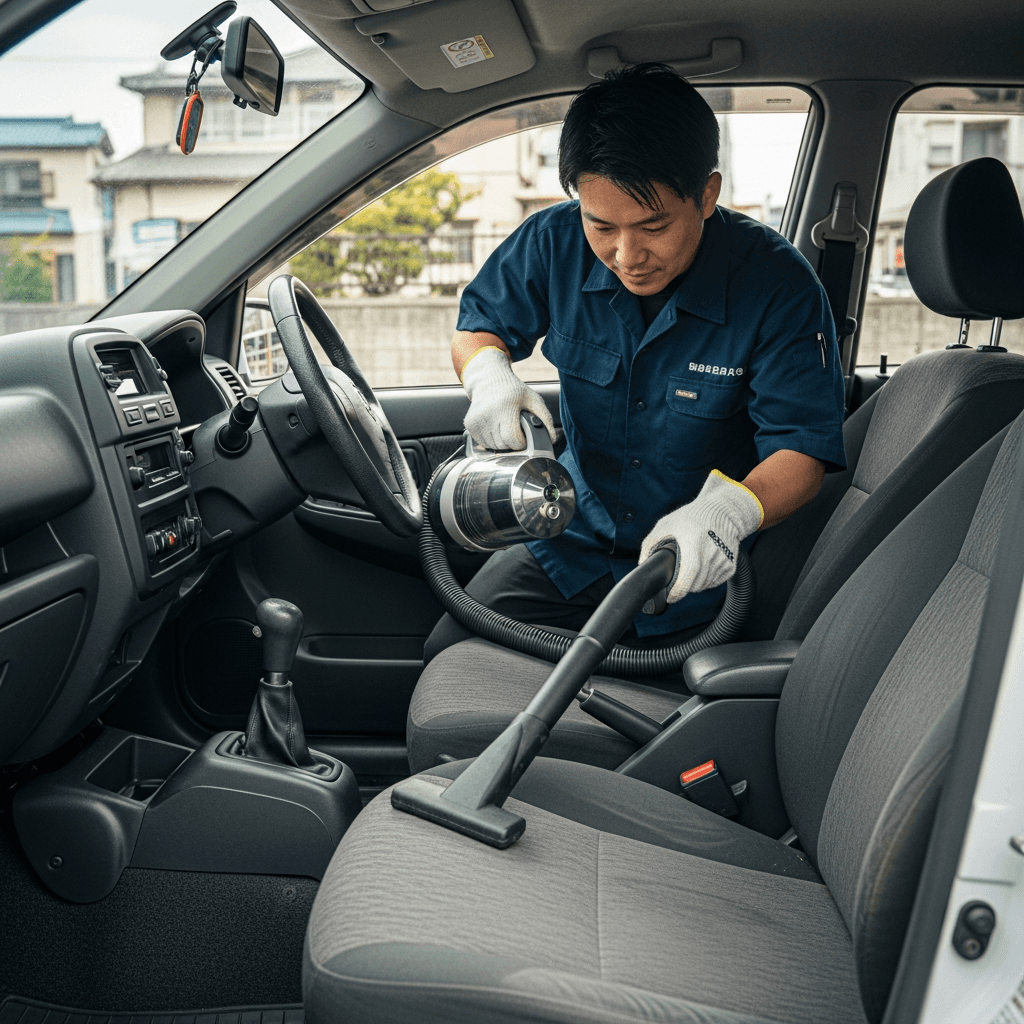 シャレードソシアルは第一印象が査定の8割を決めます。シート隙間のゴミ除去、マット洗浄、樹脂パーツ艶出しで新車級の清潔感に。特に臭いゼロなら「禁煙車」扱いで+5~8万円UP。