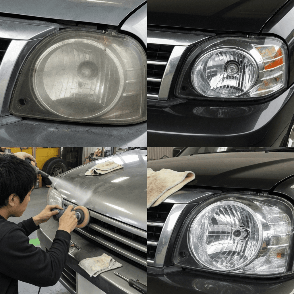 ヘッドライト黄ばみ除去+ボディ鉄粉除去で輝き復活!