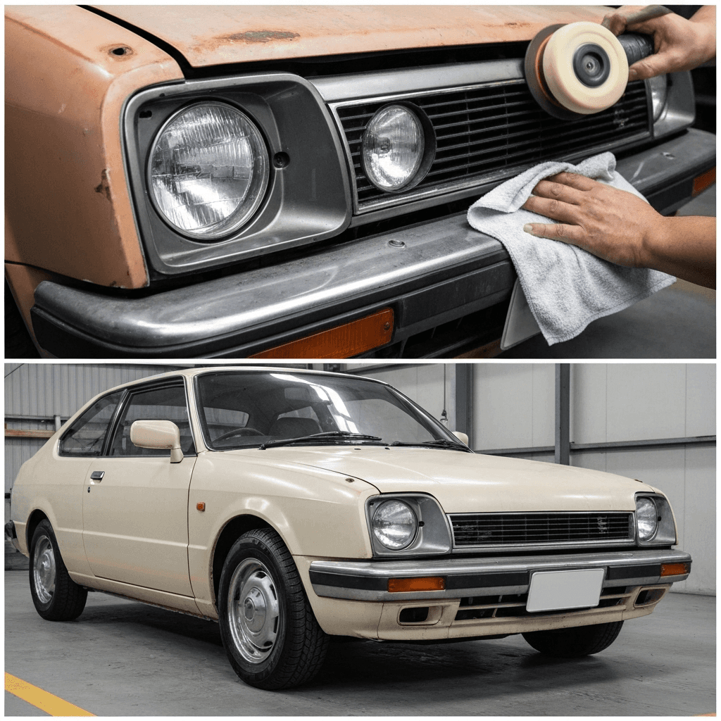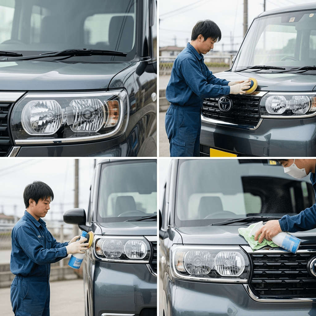シフォンはヘッドライトの黄ばみとボディの鉄粉が第一印象を損ねます。研磨+鉄粉除去クリーナー+ワックスで輝きを取り戻せば「程度良好」と判断され+4~7万円の効果。