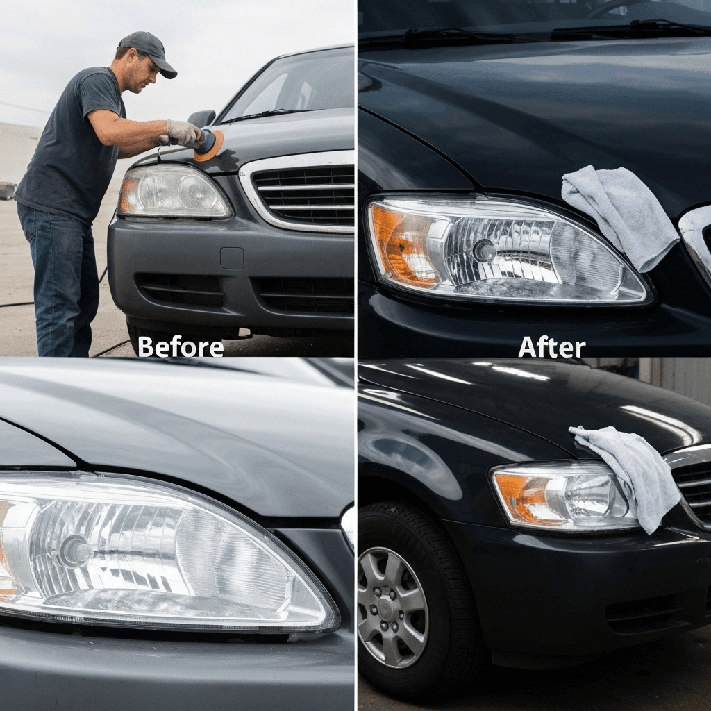 ヘッドライト黄ばみ除去+ボディ鉄粉除去で輝き復活!
