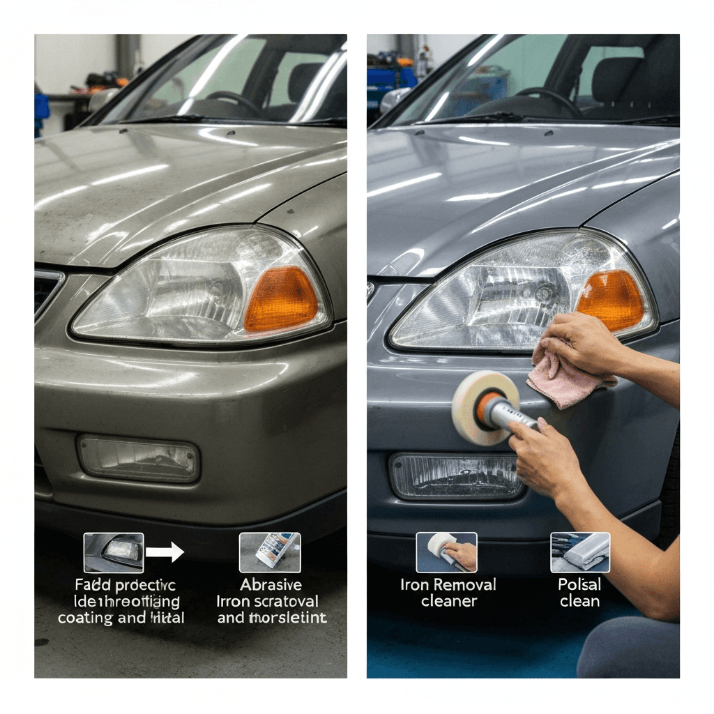 ヘッドライト黄ばみ除去+ボディ鉄粉除去で輝き復活!