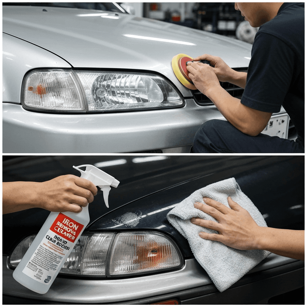 ヘッドライト黄ばみ除去+ボディ鉄粉除去で輝き復活!