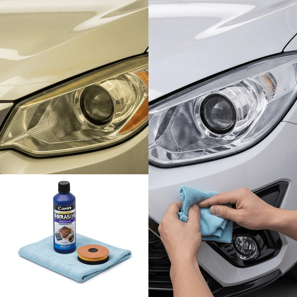 ヘッドライト黄ばみ除去で新車の輝きを取り戻す!