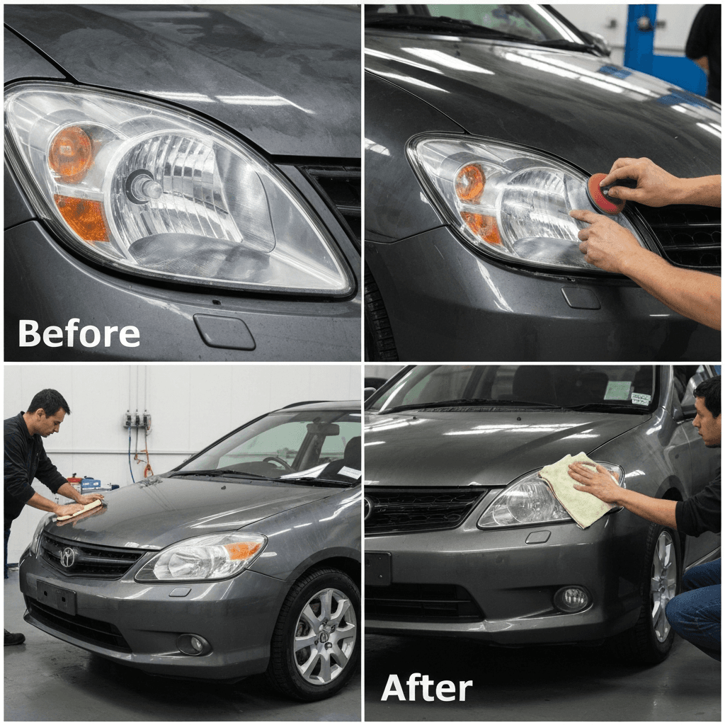 ヘッドライト黄ばみ除去+ボディ鉄粉除去で輝き復活!