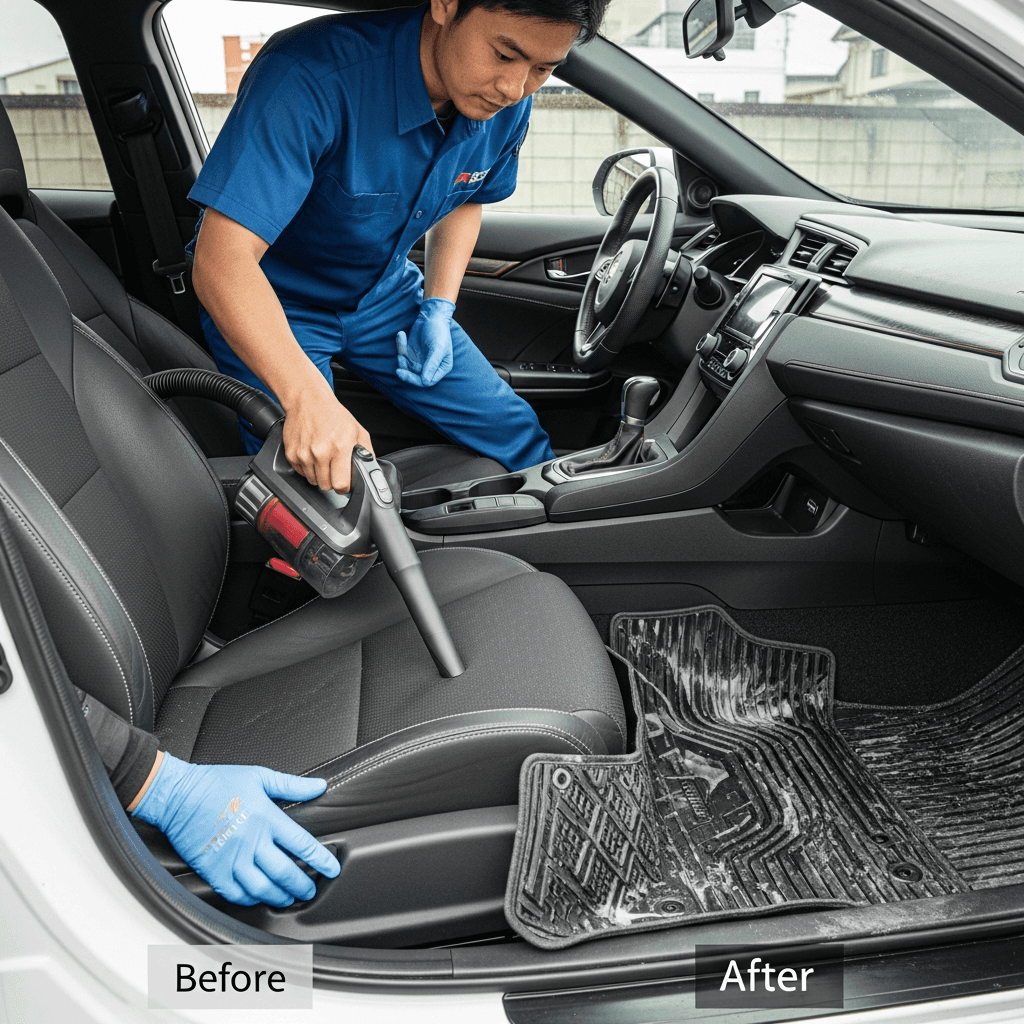 シビックタイプRは第一印象が査定の8割を決めます。シート隙間のゴミ除去、マット洗浄、樹脂パーツ艶出しで新車級の清潔感に。特に臭いゼロなら「禁煙車」扱いで+5~8万円UP。