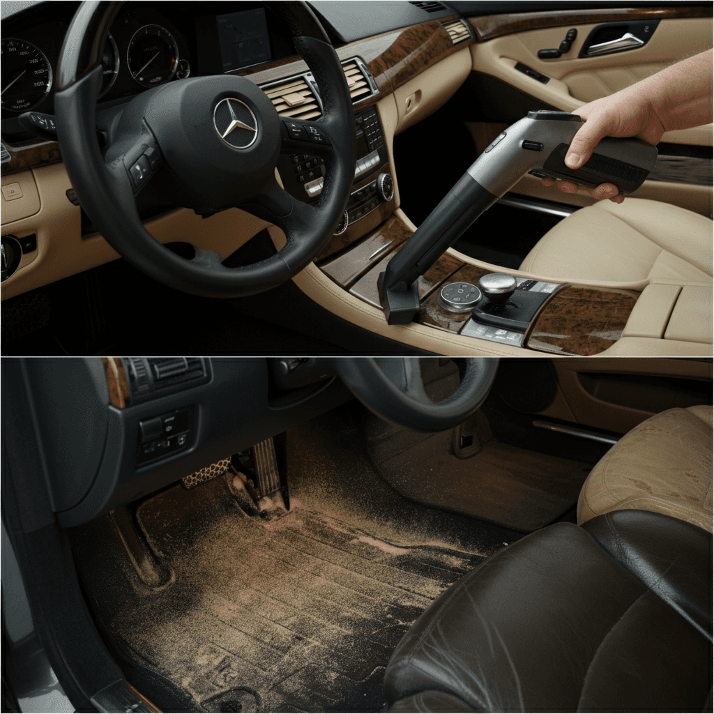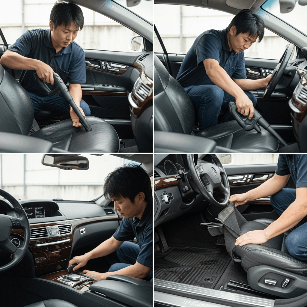 CLクラスは第一印象が査定の8割を決めます。シート隙間のゴミ除去、マット洗浄、樹脂パーツ艶出しで新車級の清潔感に。特に臭いゼロなら「禁煙車」扱いで+5~8万円UP。