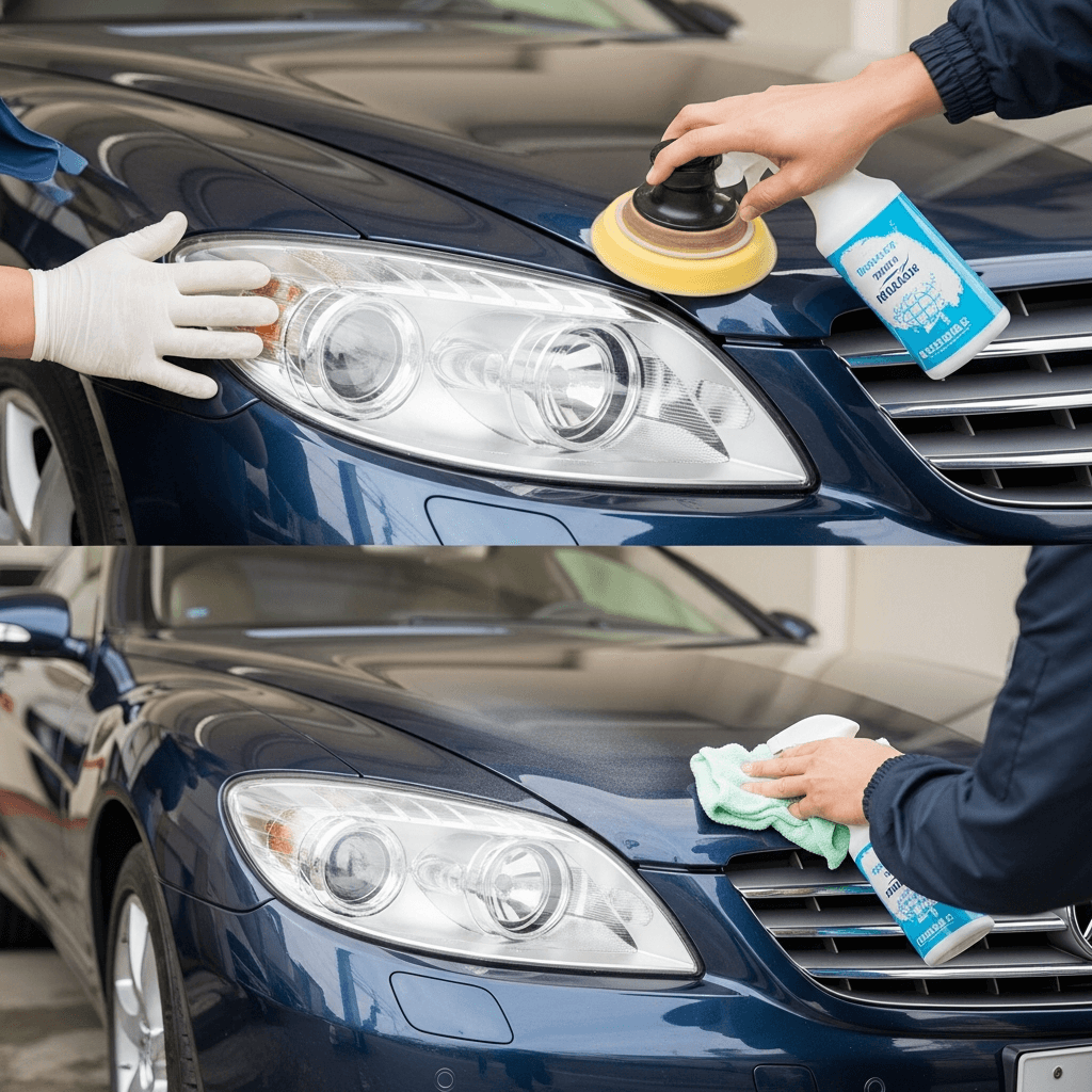 CLクラスはヘッドライトの黄ばみとボディの鉄粉が第一印象を損ねます。研磨+鉄粉除去クリーナー+ワックスで輝きを取り戻せば「程度良好」と判断され+4~7万円の効果。