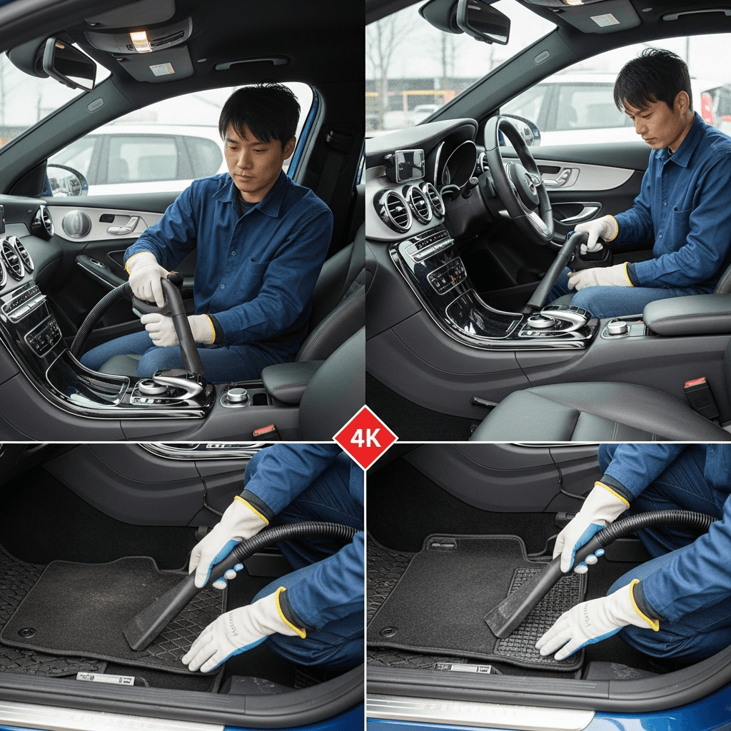 CLAシューティングブレークは第一印象が査定の8割を決めます。シート隙間のゴミ除去、マット洗浄、樹脂パーツ艶出しで新車級の清潔感に。特に臭いゼロなら「禁煙車」扱いで+5~8万円UP。