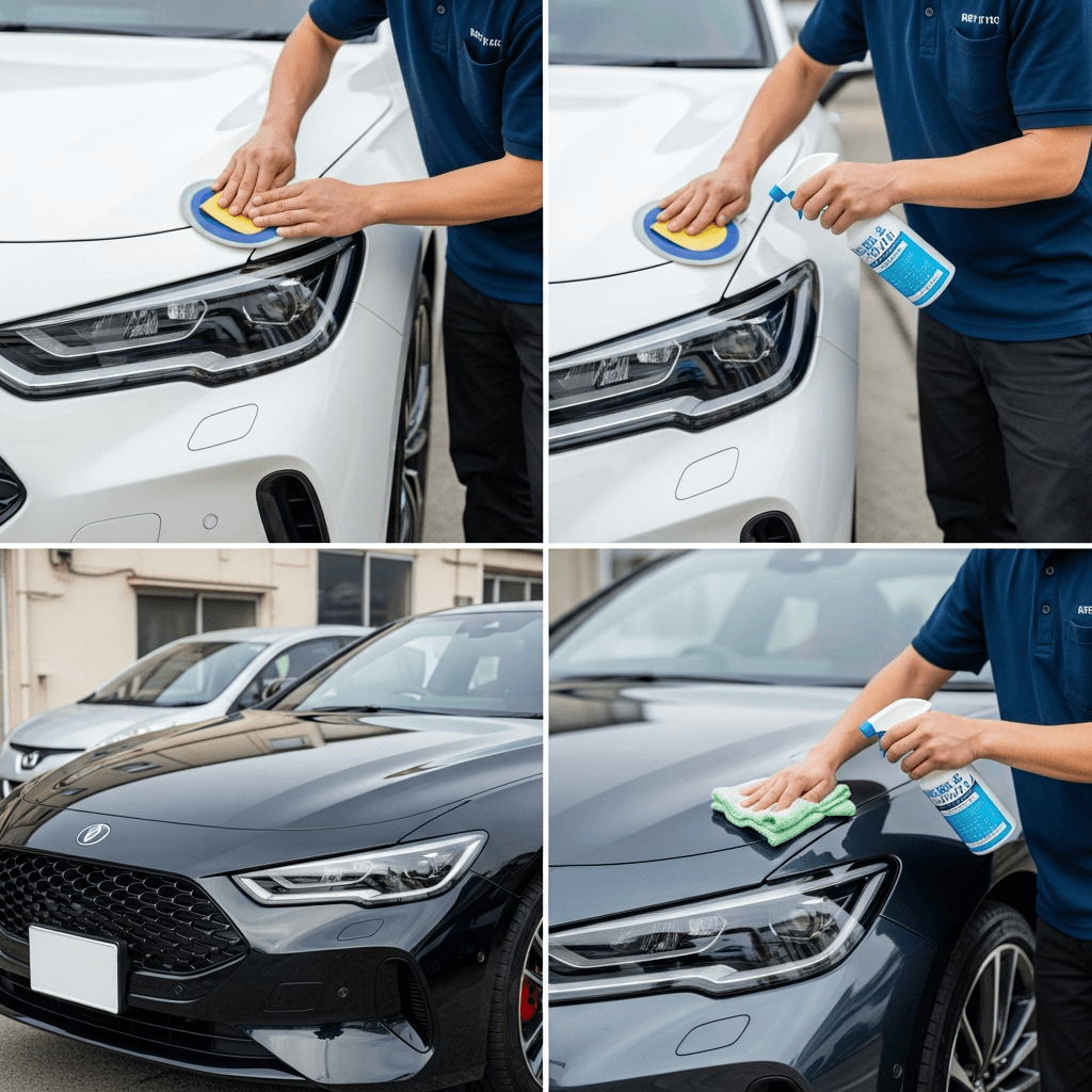 CLEカブリオレはヘッドライトの黄ばみとボディの鉄粉が第一印象を損ねます。研磨+鉄粉除去クリーナー+ワックスで輝きを取り戻せば「程度良好」と判断され+4~7万円の効果。