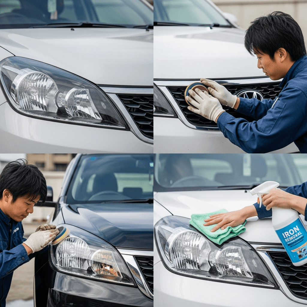 ヘッドライト黄ばみ除去+ボディ鉄粉除去で輝き復活!