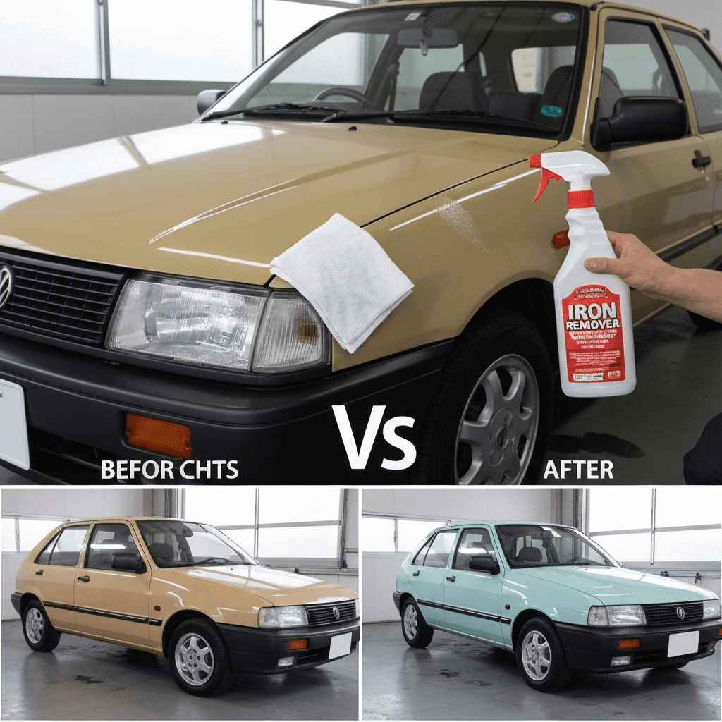 コンチェルトハッチバックはヘッドライトの黄ばみとボディの鉄粉が第一印象を損ねます。研磨+鉄粉除去クリーナー+ワックスで輝きを取り戻せば「程度良好」と判断され+4~7万円の効果。
