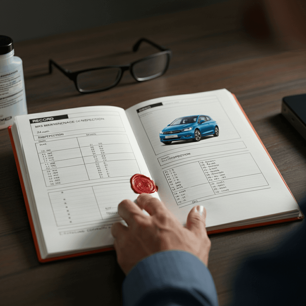 コンチェルトハッチバックの整備記録簿に定期点検(12ヶ月・24ヶ月)の履歴が全て記載されていれば「管理の行き届いた車」と高評価。特にエンジンオイル交換履歴は重要で+6~9万円の効果。