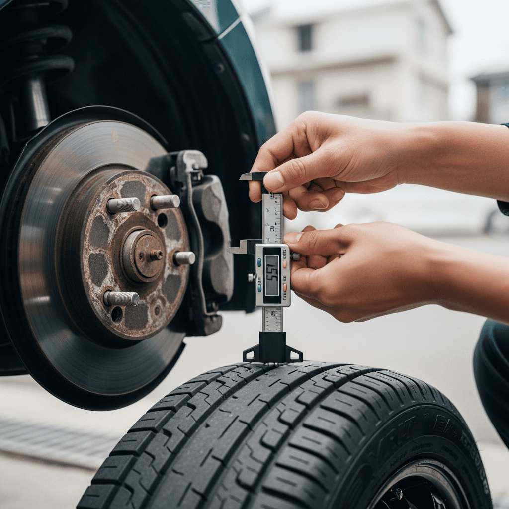 スポーツカーはブレーキとタイヤが査定の最重要項目。パッド残量6mm以上、タイヤ溝5mm以上を写真+ノギス測定値で証明すれば、「走行性能良好」の安心感を与え+8~12万円の評価UP。