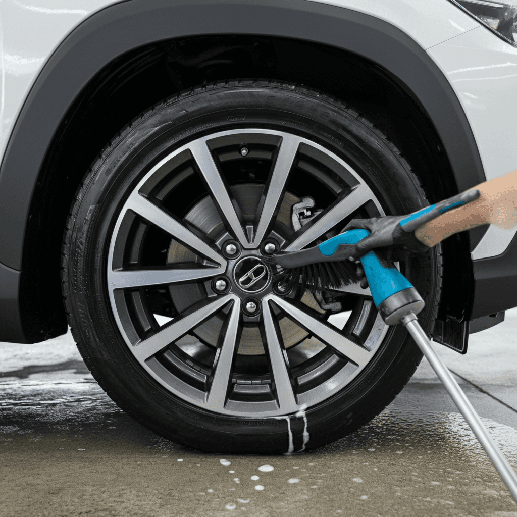 セダンは純正アルミホイールの傷が目立ちやすい。ホイールクリーナーで洗浄+タイヤ溝5mm以上確保で「足回り良好」評価。特にカローラクロスは高級感が重要で+6~9万円の効果。