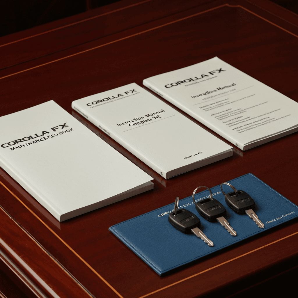 カローラFXは高級セダンとして書類完備が必須。整備記録簿、取扱説明書、スペアキー2本が揃っていれば「ワンオーナー級の管理」で+4~7万円UP。特にスペアキーは重要。