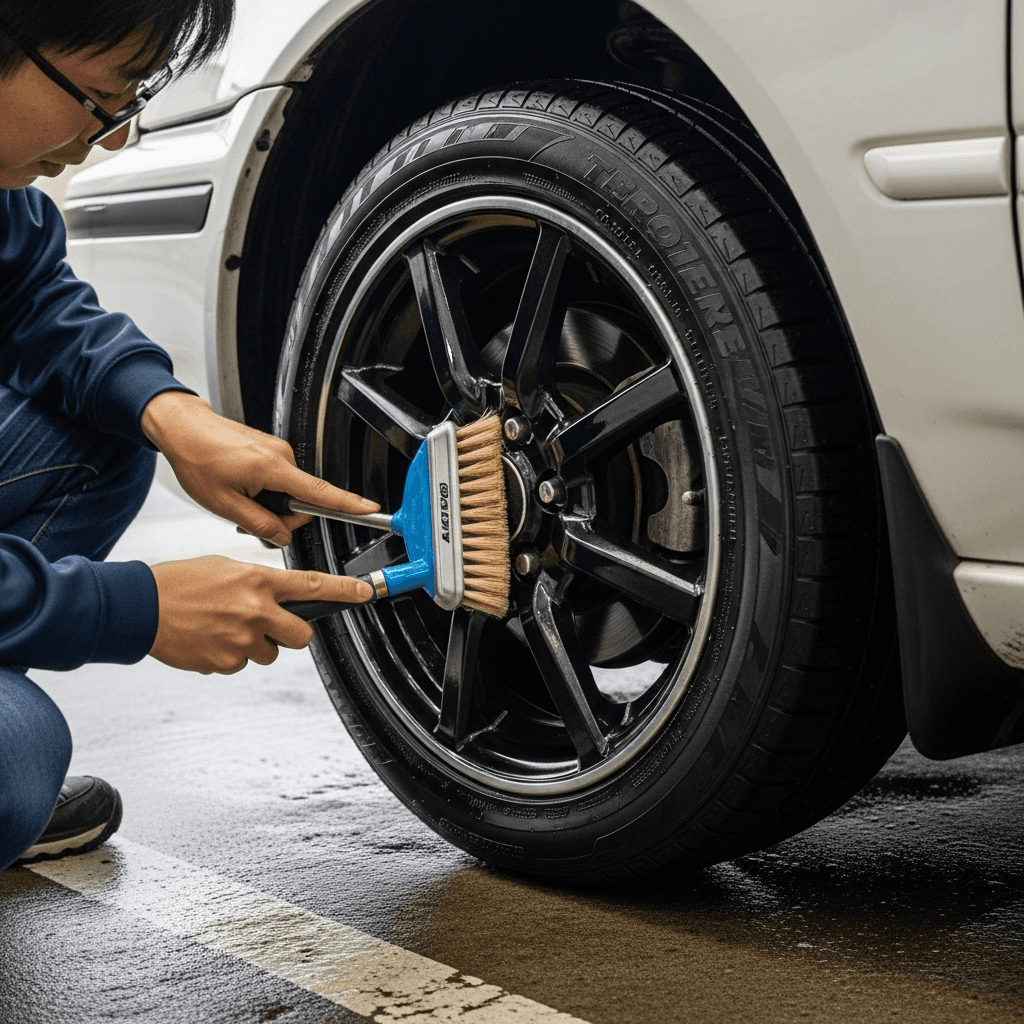 セダンは純正アルミホイールの傷が目立ちやすい。ホイールクリーナーで洗浄+タイヤ溝5mm以上確保で「足回り良好」評価。特にカローラレビンハッチバックは高級感が重要で+6~9万円の効果。