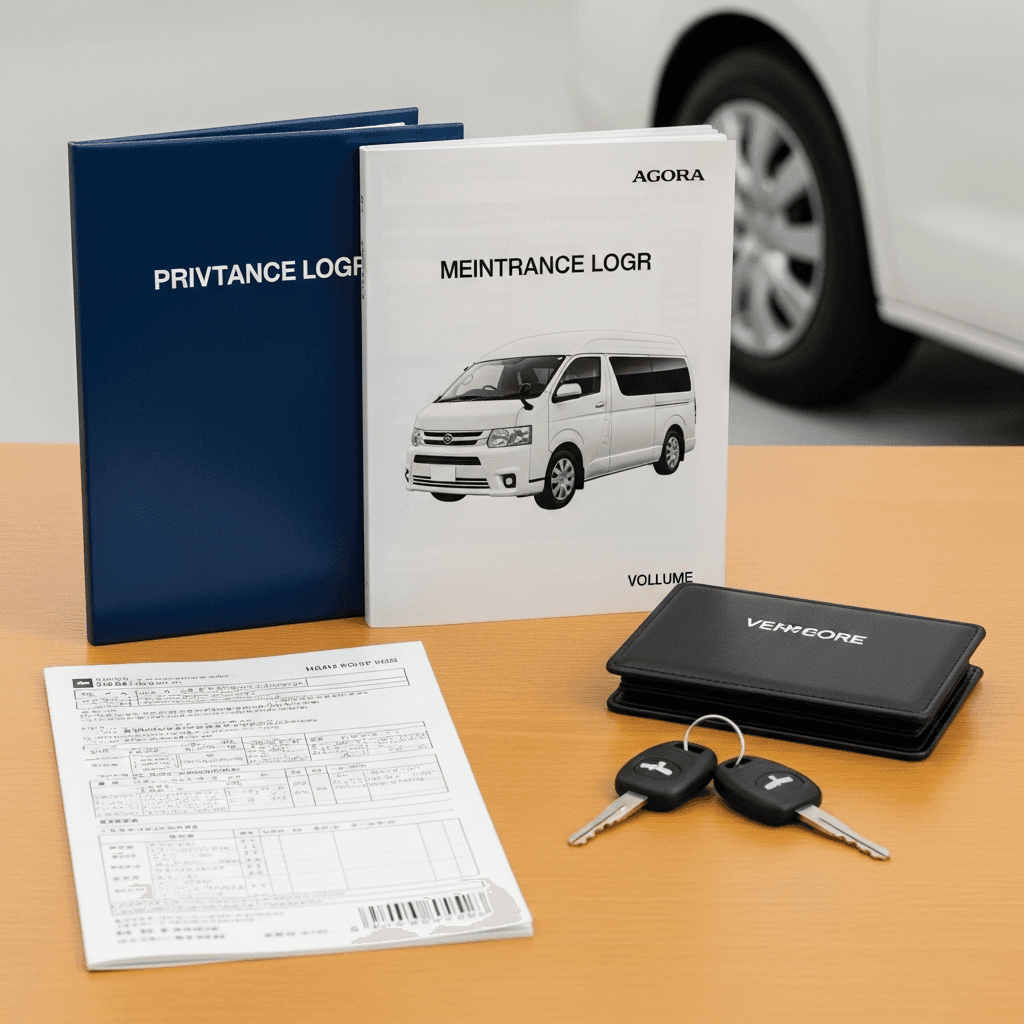 カローラバンは高級セダンとして書類完備が必須。整備記録簿、取扱説明書、スペアキー2本が揃っていれば「ワンオーナー級の管理」で+4~7万円UP。特にスペアキーは重要。