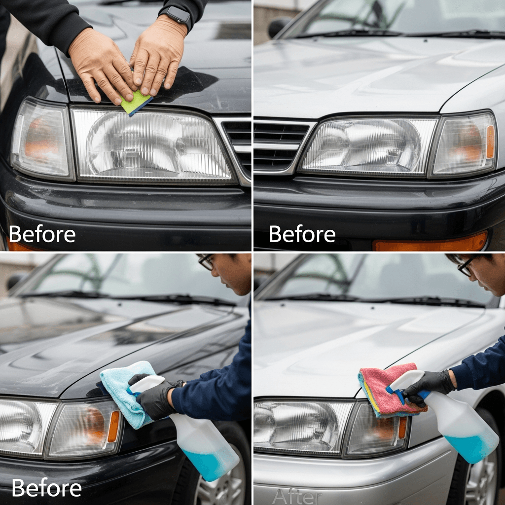 コロナはヘッドライトの黄ばみとボディの鉄粉が第一印象を損ねます。研磨+鉄粉除去クリーナー+ワックスで輝きを取り戻せば「程度良好」と判断され+4~7万円の効果。