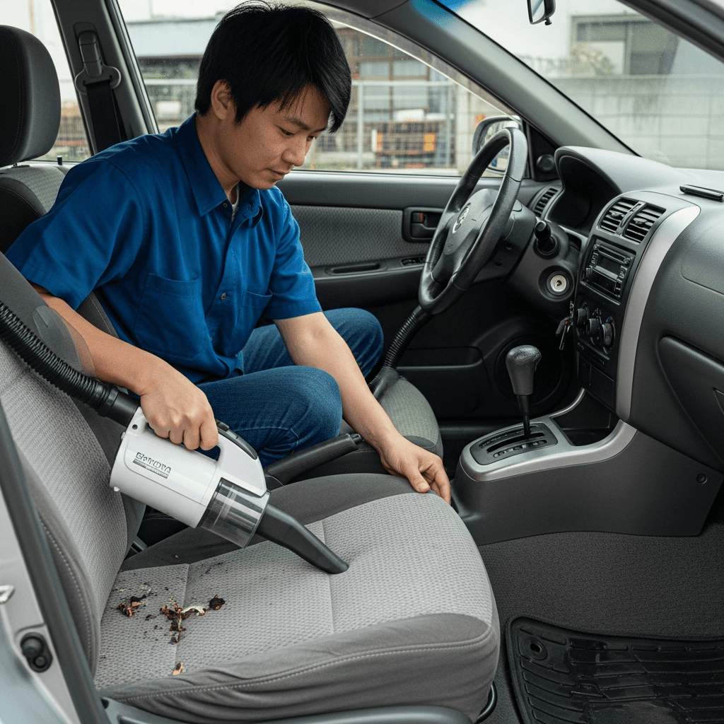コロナは第一印象が査定の8割を決めます。シート隙間のゴミ除去、マット洗浄、樹脂パーツ艶出しで新車級の清潔感に。特に臭いゼロなら「禁煙車」扱いで+5~8万円UP。