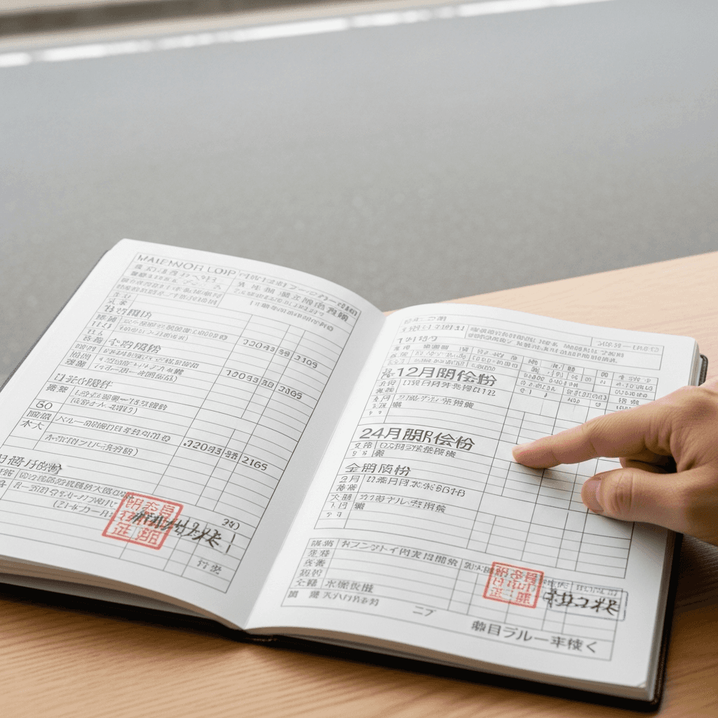 コロナの整備記録簿に定期点検(12ヶ月・24ヶ月)の履歴が全て記載されていれば「管理の行き届いた車」と高評価。特にエンジンオイル交換履歴は重要で+6~9万円の効果。
