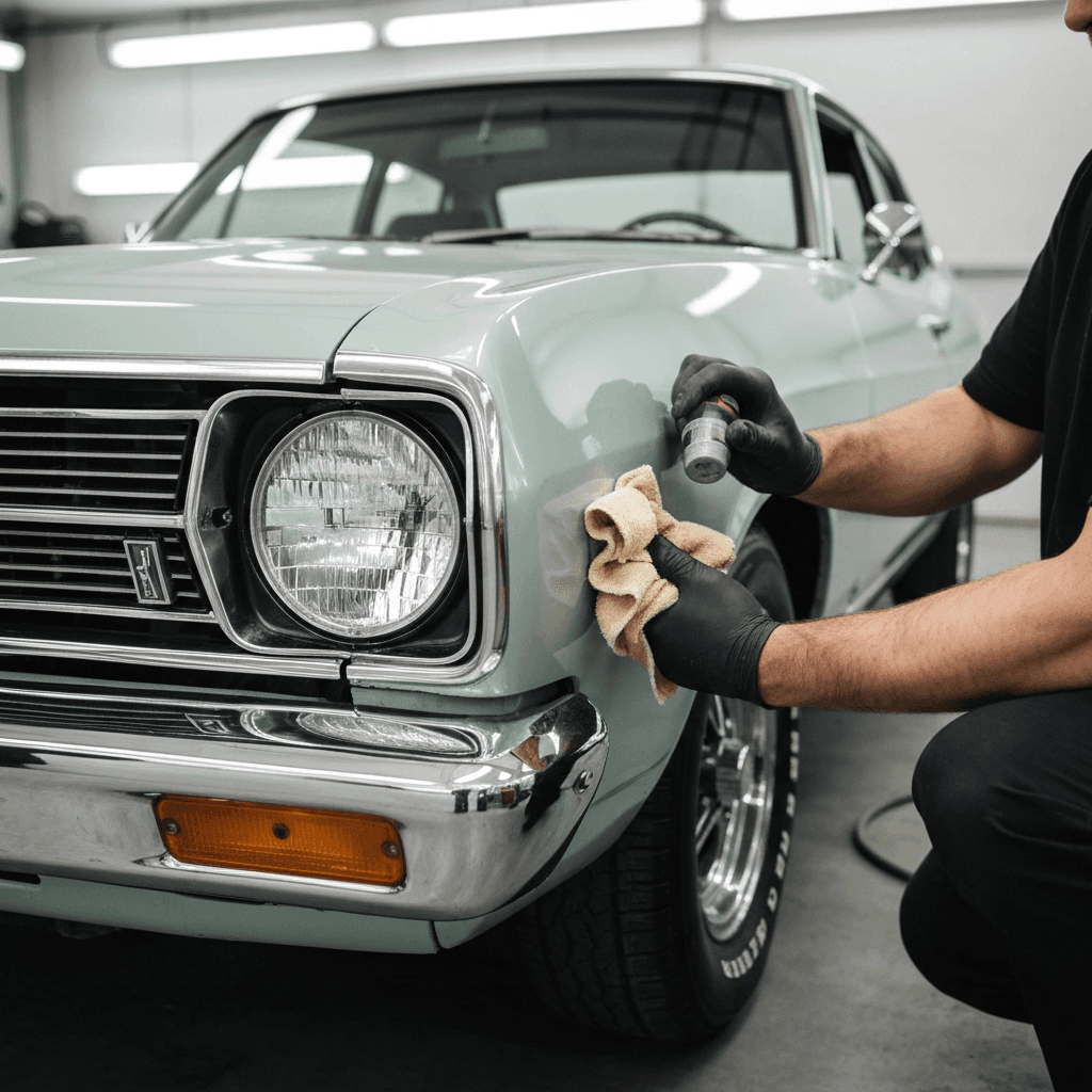 コロナクーペはヘッドライトの黄ばみとボディの鉄粉が第一印象を損ねます。研磨+鉄粉除去クリーナー+ワックスで輝きを取り戻せば「程度良好」と判断され+4~7万円の効果。