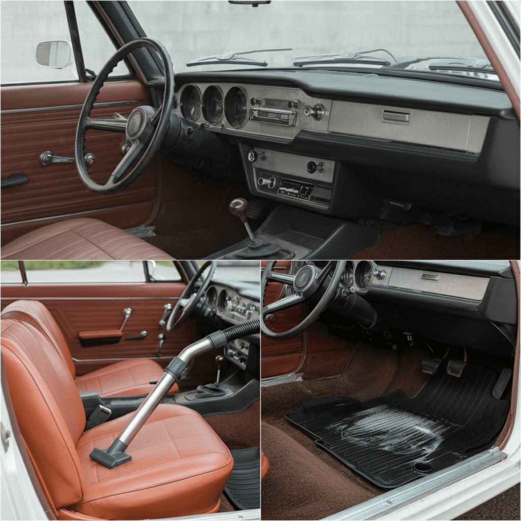コロナクーペは第一印象が査定の8割を決めます。シート隙間のゴミ除去、マット洗浄、樹脂パーツ艶出しで新車級の清潔感に。特に臭いゼロなら「禁煙車」扱いで+5~8万円UP。