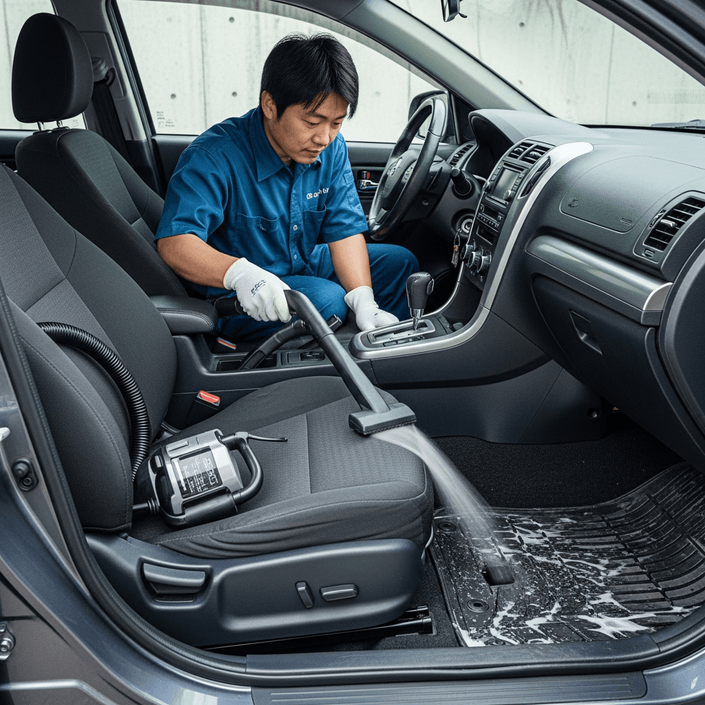 コロナエクシヴは第一印象が査定の8割を決めます。シート隙間のゴミ除去、マット洗浄、樹脂パーツ艶出しで新車級の清潔感に。特に臭いゼロなら「禁煙車」扱いで+5~8万円UP。