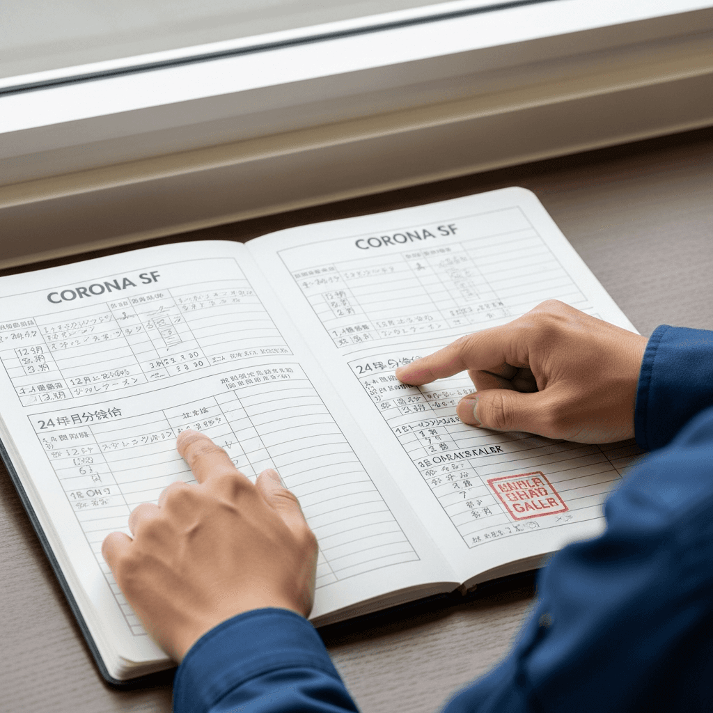 コロナSFの整備記録簿に定期点検(12ヶ月・24ヶ月)の履歴が全て記載されていれば「管理の行き届いた車」と高評価。特にエンジンオイル交換履歴は重要で+6~9万円の効果。