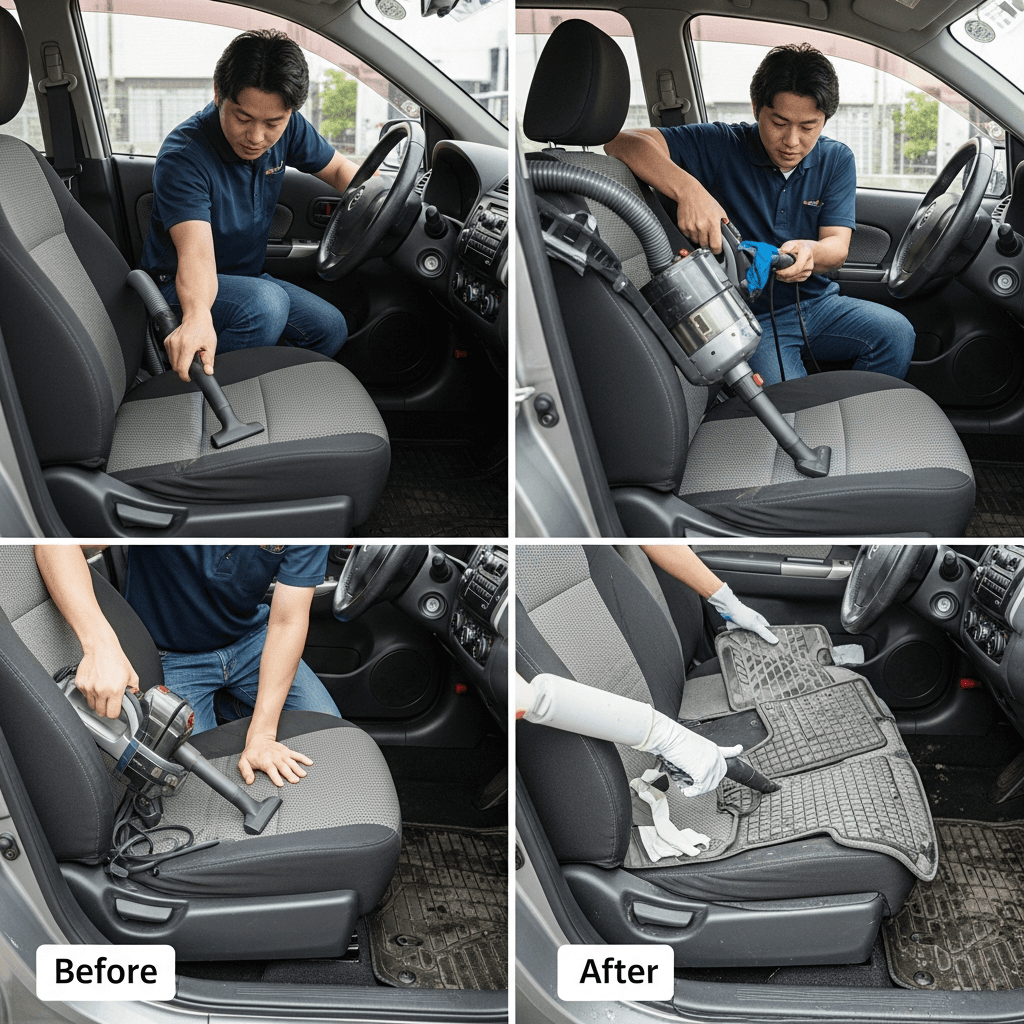 コロナSFは第一印象が査定の8割を決めます。シート隙間のゴミ除去、マット洗浄、樹脂パーツ艶出しで新車級の清潔感に。特に臭いゼロなら「禁煙車」扱いで+5~8万円UP。