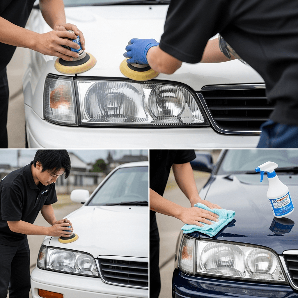ヘッドライト黄ばみ除去+ボディ鉄粉除去で輝き復活!