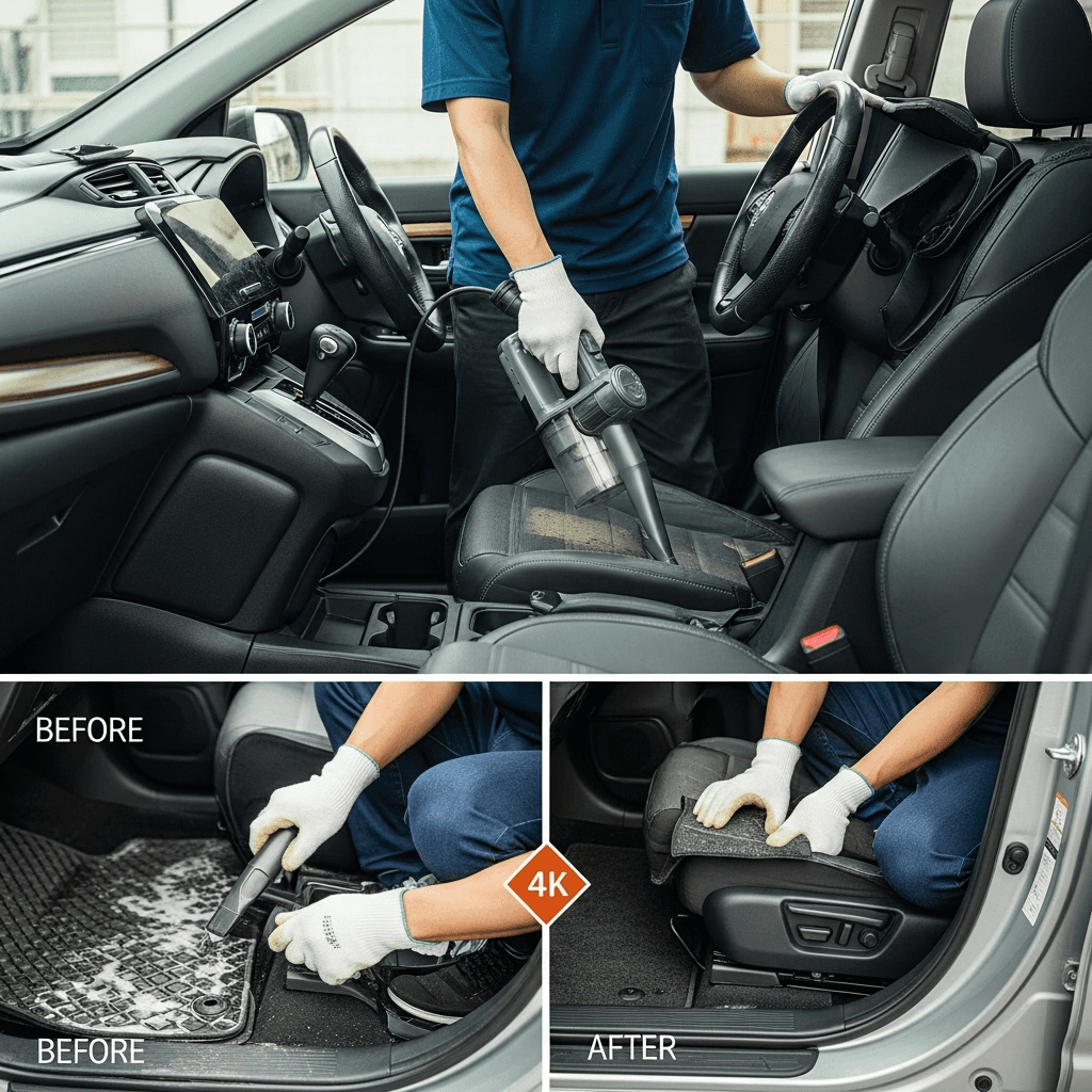 CR-Vは第一印象が査定の8割を決めます。シート隙間のゴミ除去、マット洗浄、樹脂パーツ艶出しで新車級の清潔感に。特に臭いゼロなら「禁煙車」扱いで+5~8万円UP。