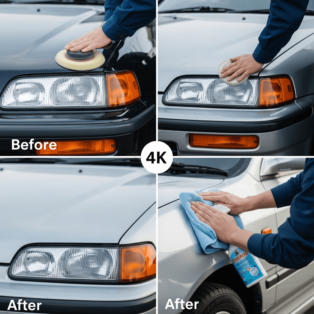 CR-Xデルソルはヘッドライトの黄ばみとボディの鉄粉が第一印象を損ねます。研磨+鉄粉除去クリーナー+ワックスで輝きを取り戻せば「程度良好」と判断され+4~7万円の効果。