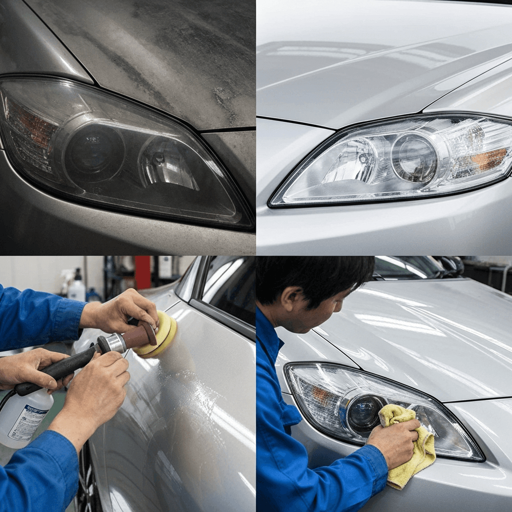 ヘッドライト黄ばみ除去+ボディ鉄粉除去で輝き復活!