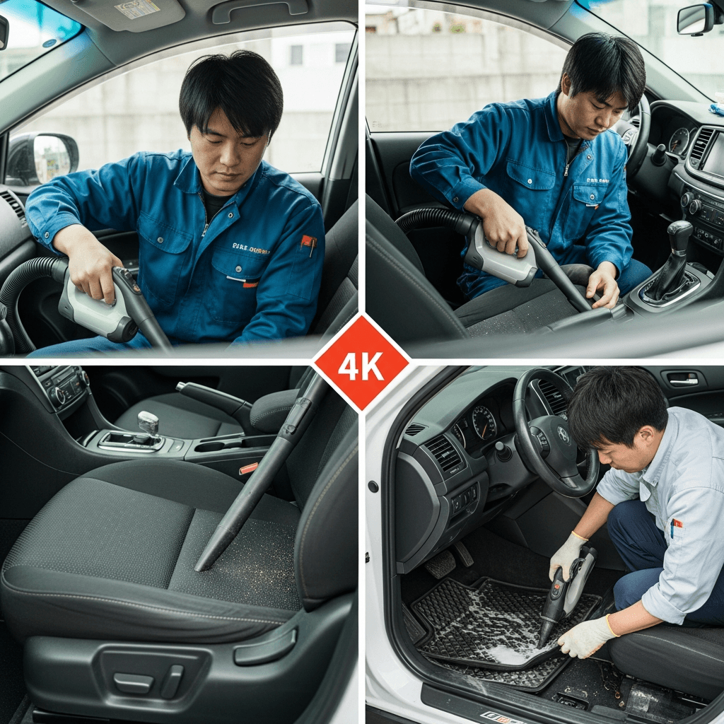 クルーは第一印象が査定の8割を決めます。シート隙間のゴミ除去、マット洗浄、樹脂パーツ艶出しで新車級の清潔感に。特に臭いゼロなら「禁煙車」扱いで+5~8万円UP。