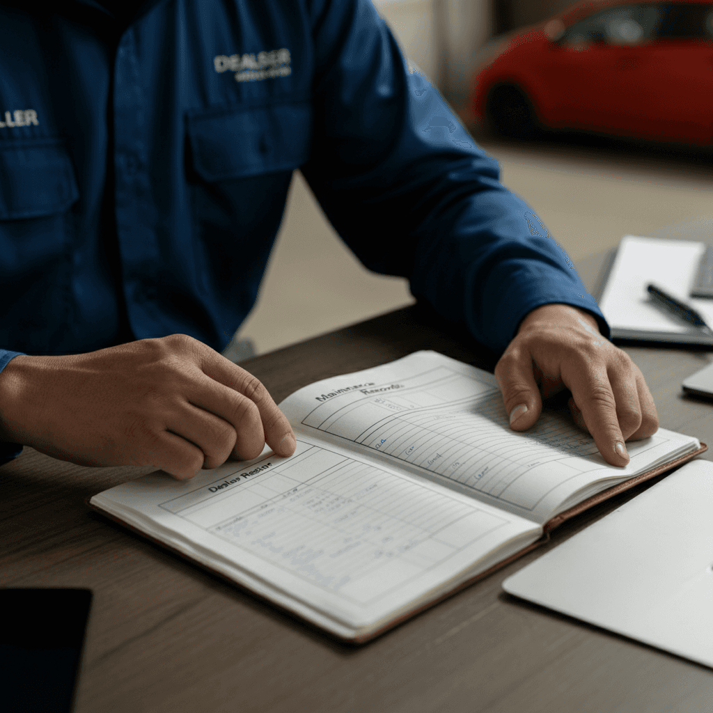 クルーの整備記録簿に定期点検(12ヶ月・24ヶ月)の履歴が全て記載されていれば「管理の行き届いた車」と高評価。特にエンジンオイル交換履歴は重要で+6~9万円の効果。