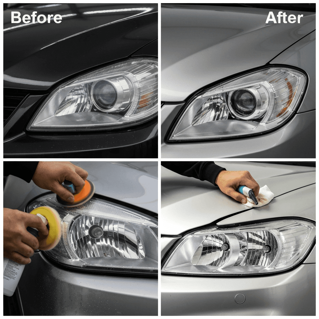 ヘッドライト黄ばみ除去+ボディ鉄粉除去で輝き復活!