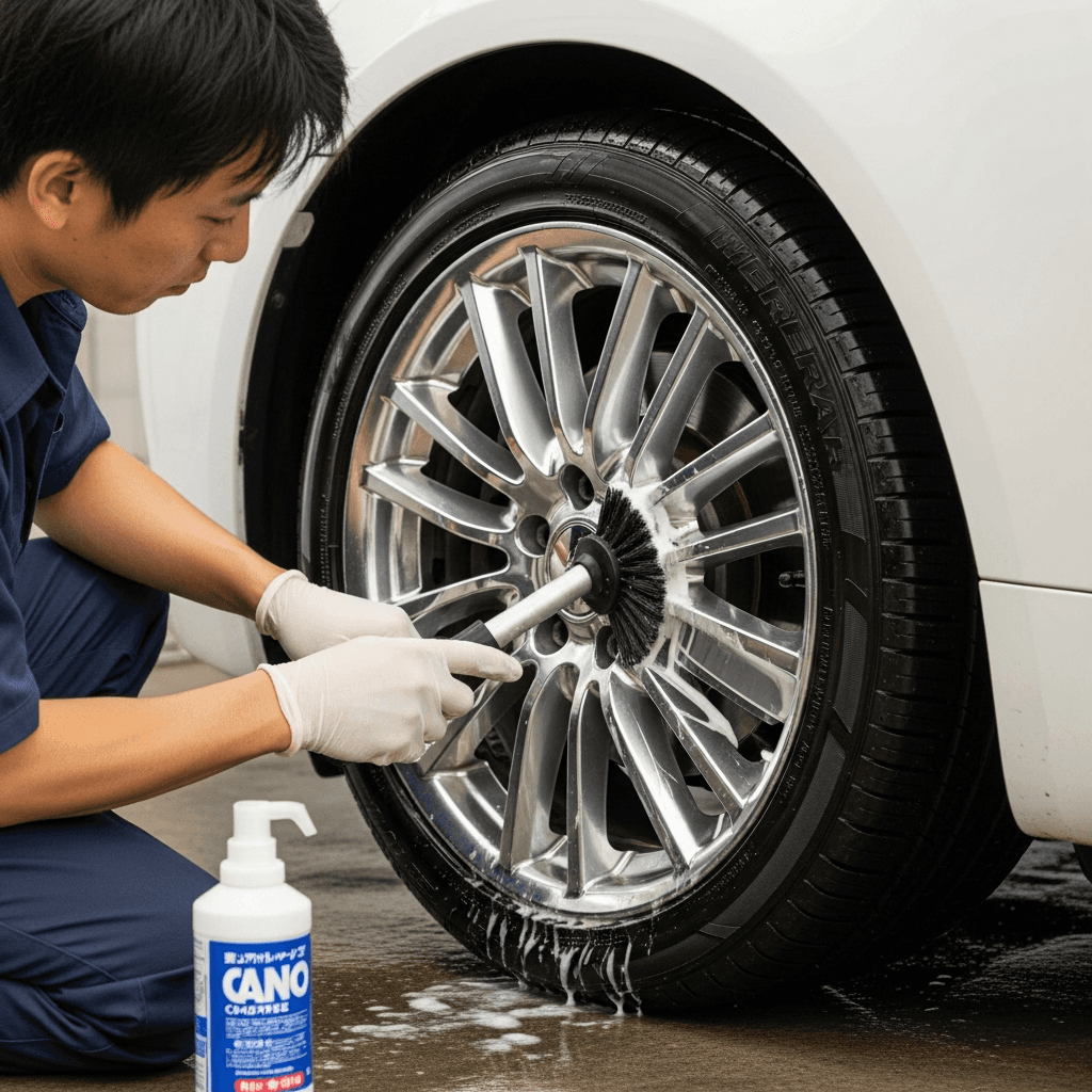 セダンは純正アルミホイールの傷が目立ちやすい。ホイールクリーナーで洗浄+タイヤ溝5mm以上確保で「足回り良好」評価。特にクラウンロイヤルは高級感が重要で+6~9万円の効果。