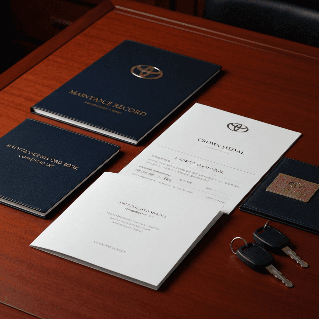 クラウンセダンは高級セダンとして書類完備が必須。整備記録簿、取扱説明書、スペアキー2本が揃っていれば「ワンオーナー級の管理」で+4~7万円UP。特にスペアキーは重要。