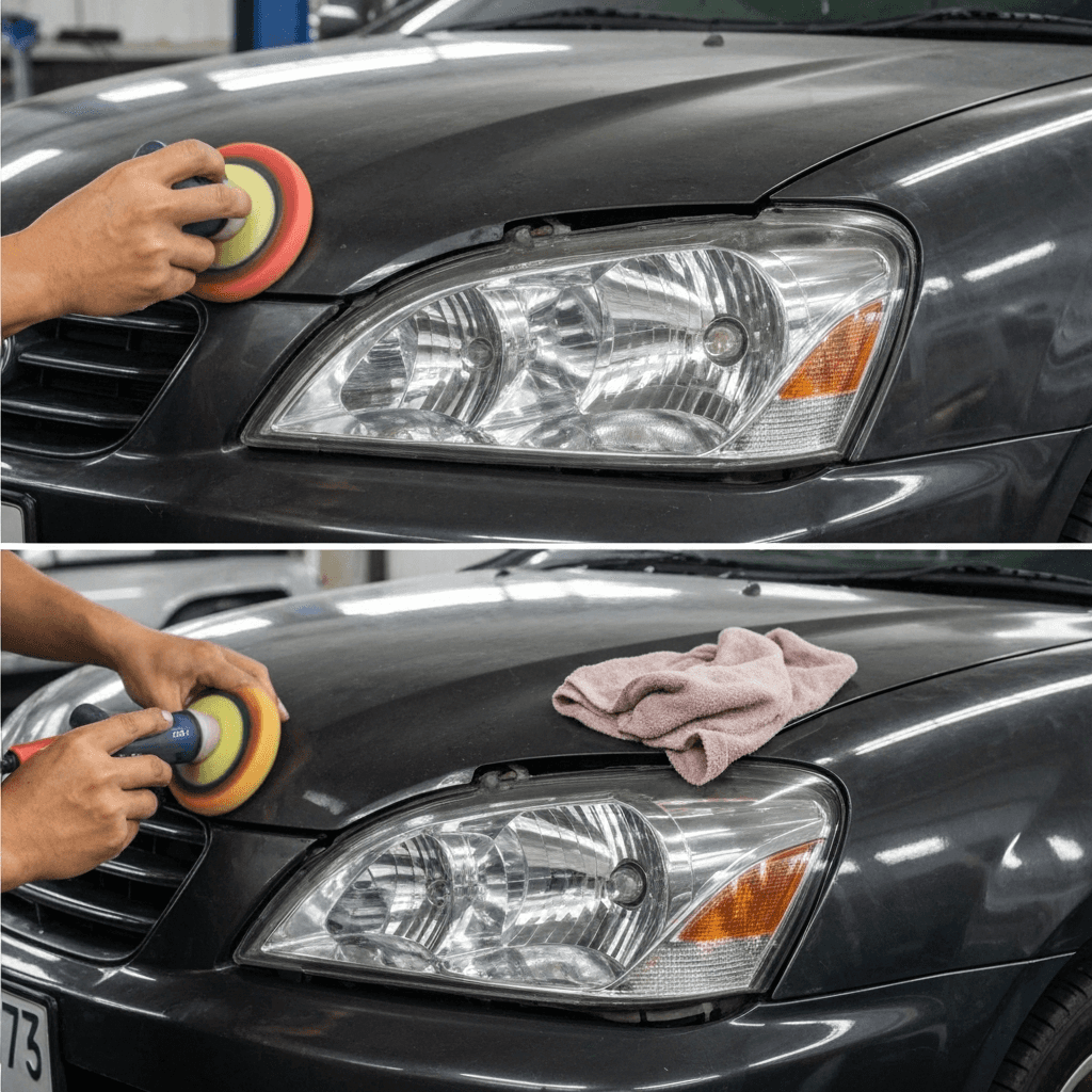 ヘッドライト黄ばみ除去+ボディ鉄粉除去で輝き復活!