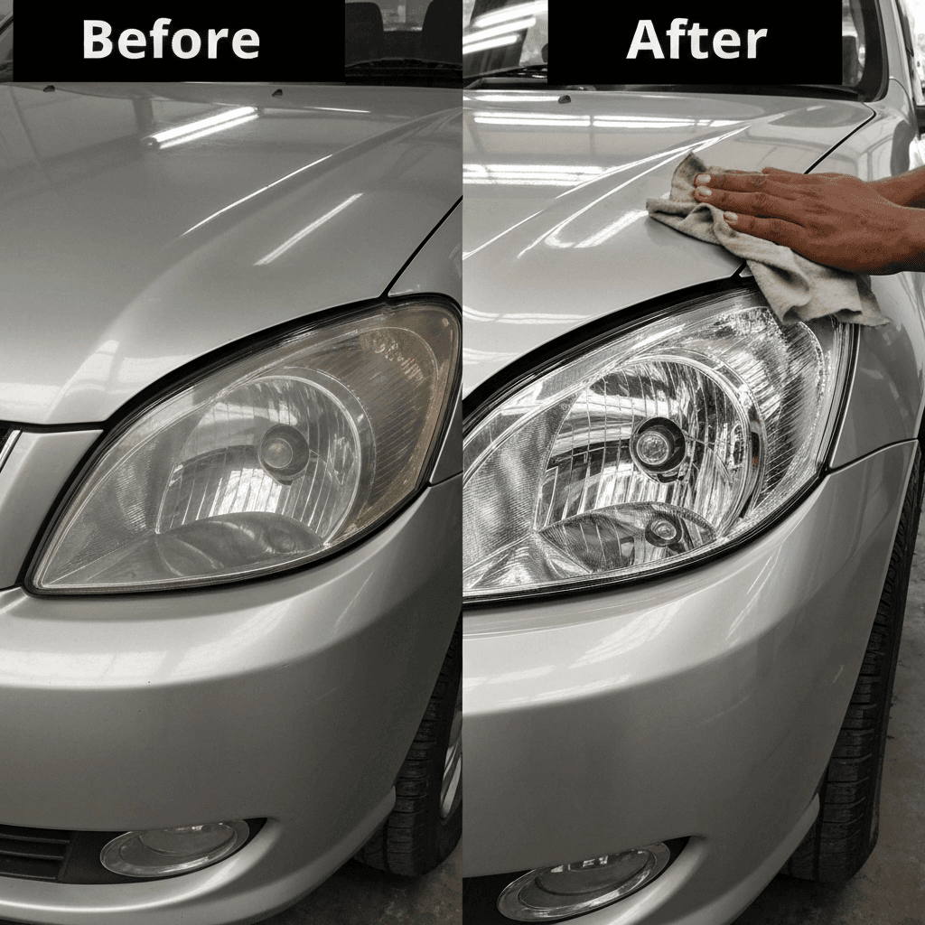 ヘッドライト黄ばみ除去+ボディ鉄粉除去で輝き復活!