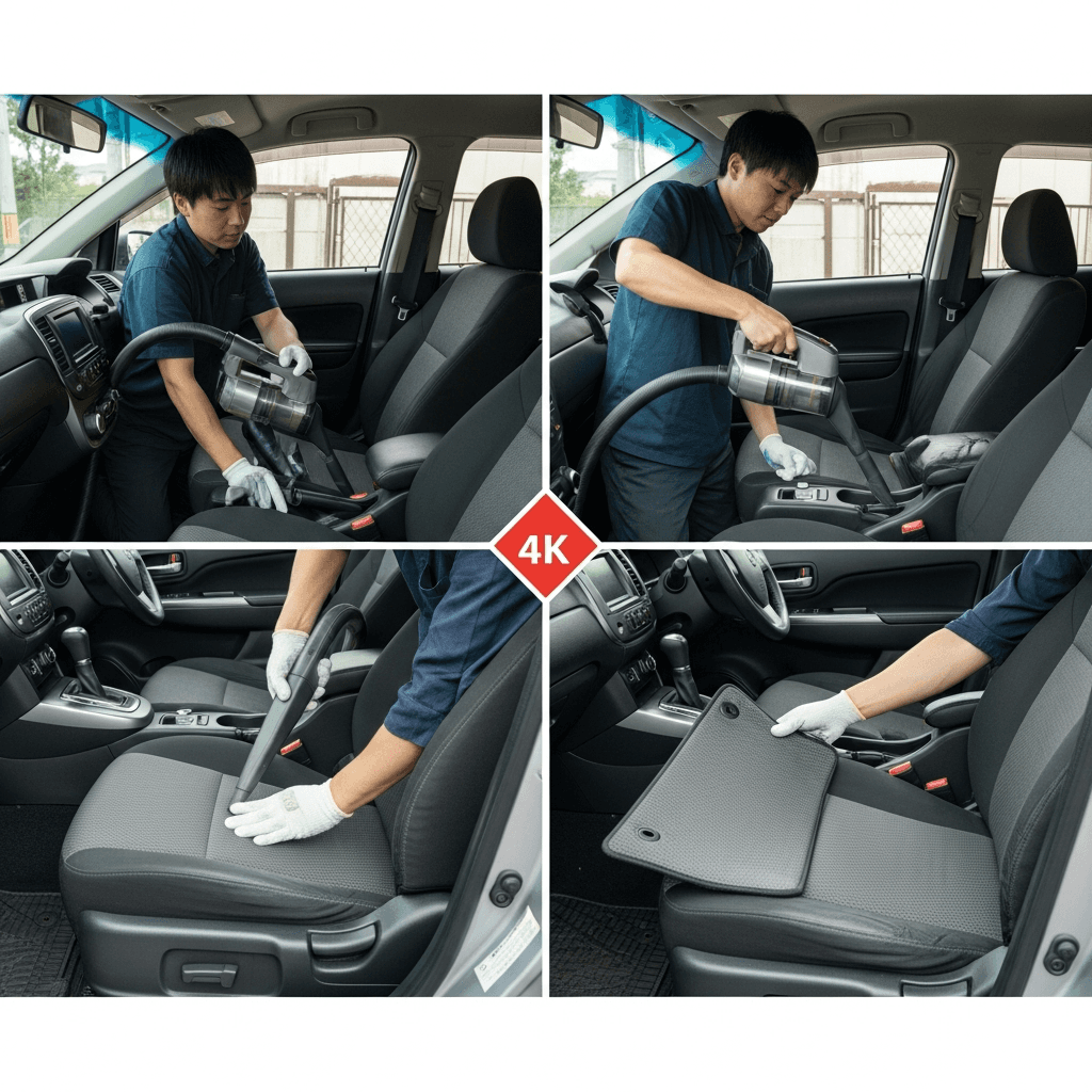カレンは第一印象が査定の8割を決めます。シート隙間のゴミ除去、マット洗浄、樹脂パーツ艶出しで新車級の清潔感に。特に臭いゼロなら「禁煙車」扱いで+5~8万円UP。